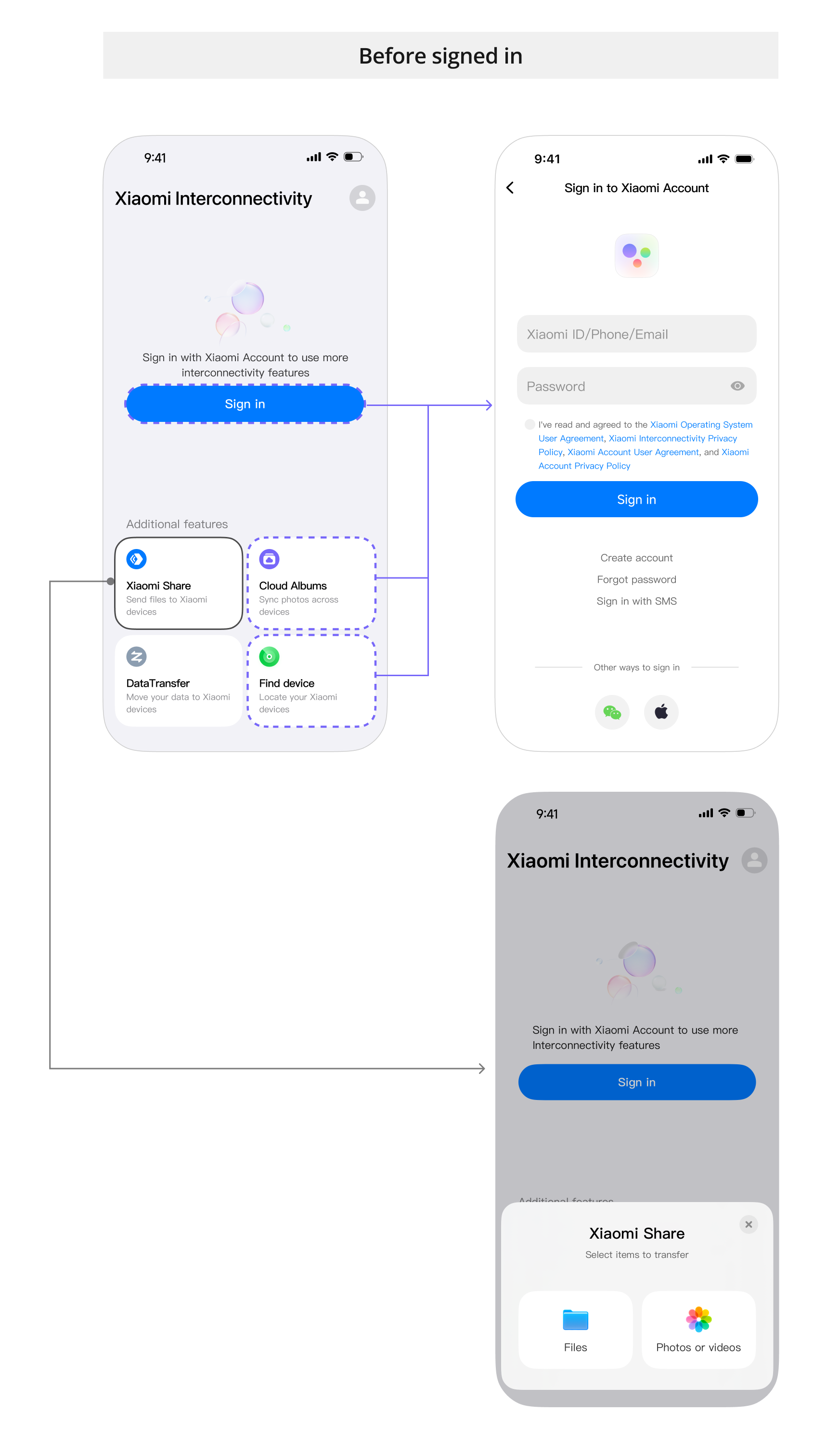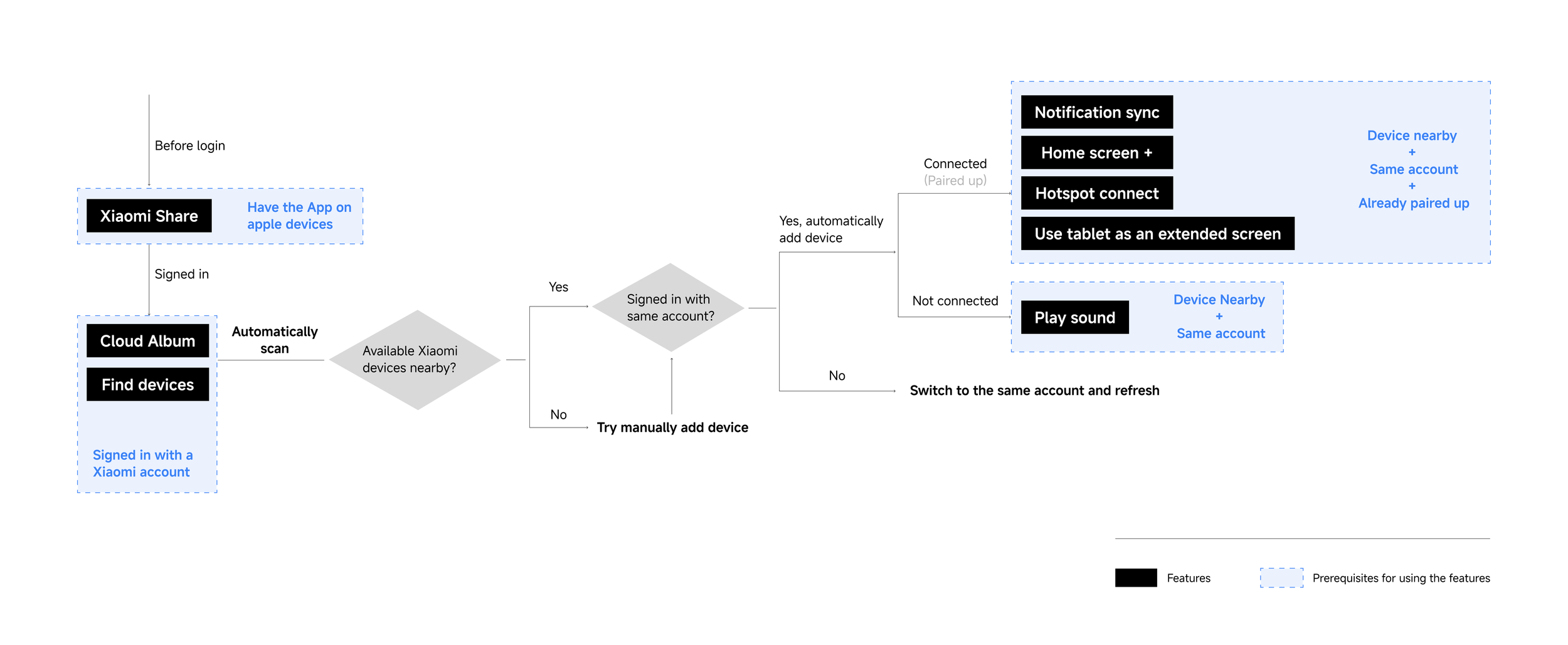 Some feature has their own prerequisites and activation conditions. For instance, Xiaomi Share becomes available immediately after the user signs in, while Home Screen+—a mirroring and remote-control feature—requires the Apple device and Xiaomi device to be paired beforehand. These differences in technical prerequisites introduce additional design complexity, particularly in ensuring a seamless and consistent user experience.